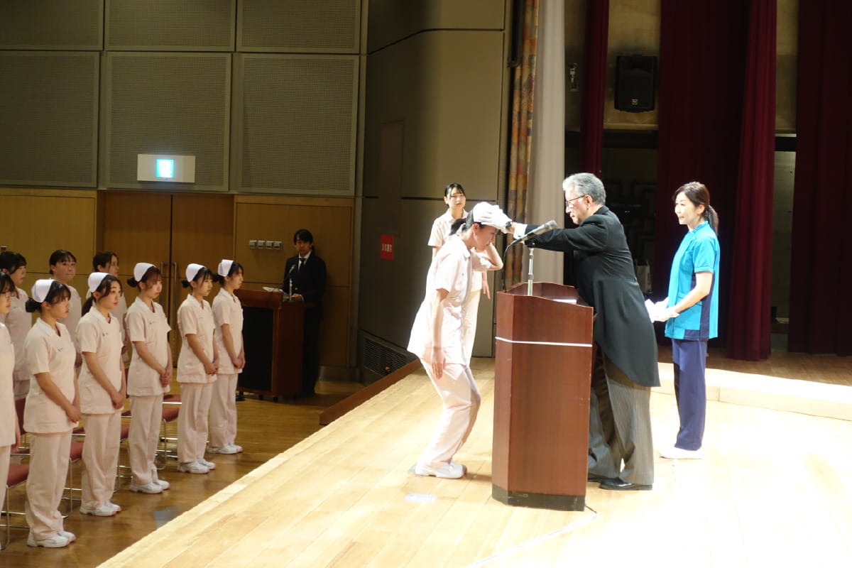 本格的な臨床実習直前の1⽉に⾏われます。医療⼈としての意識を⾼め、⼀⼈ひとりがキャンドルを灯しながら実習に向けての⼼構えを新たにするセレモニーです。