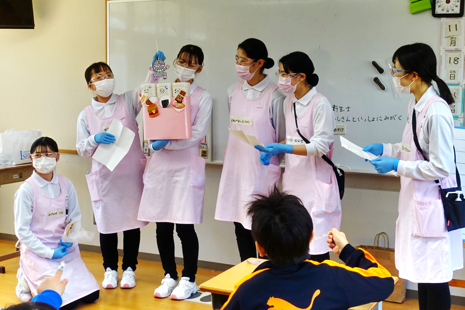 1年次の後期より、⻭科診療所や幼稚園、保健センター、福祉施設などさまざまな実習先を訪れます。対象の方たちと直接ふれあいながら、技術を⾼めていきます。