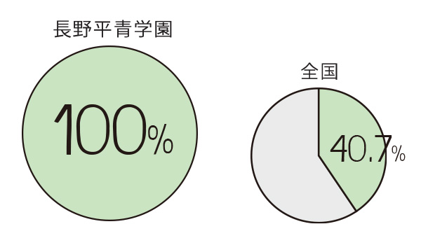 国家資格である「医薬品登録販売者」。全国・⻑野県の合格率は約4割なのに対し、平⻘学園の合格率は100%を誇ります(2025年度実績)。独⾃のカリキュラムや講師陣のサポートにより実現している数字です。