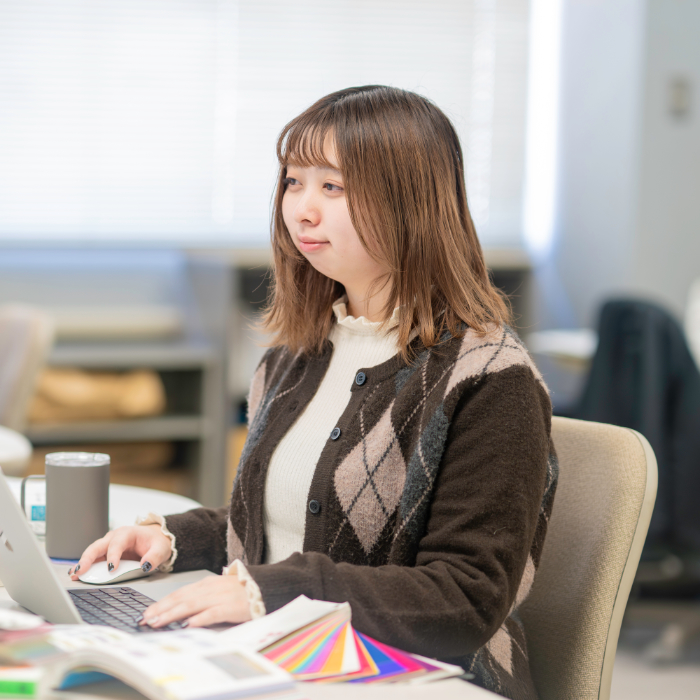 主な仕事内容はWebサイトのメンテナンスや、サイトリニューアル業務です。仕事をしていく中で、在学中に学んだHTML・CSSの知識が現場で活きているなと強く感じます。将来について悩むことが増えてくると思いますが、学生の今だからこそできる経験をたくさんして、学生生活を楽しんでほしいです。