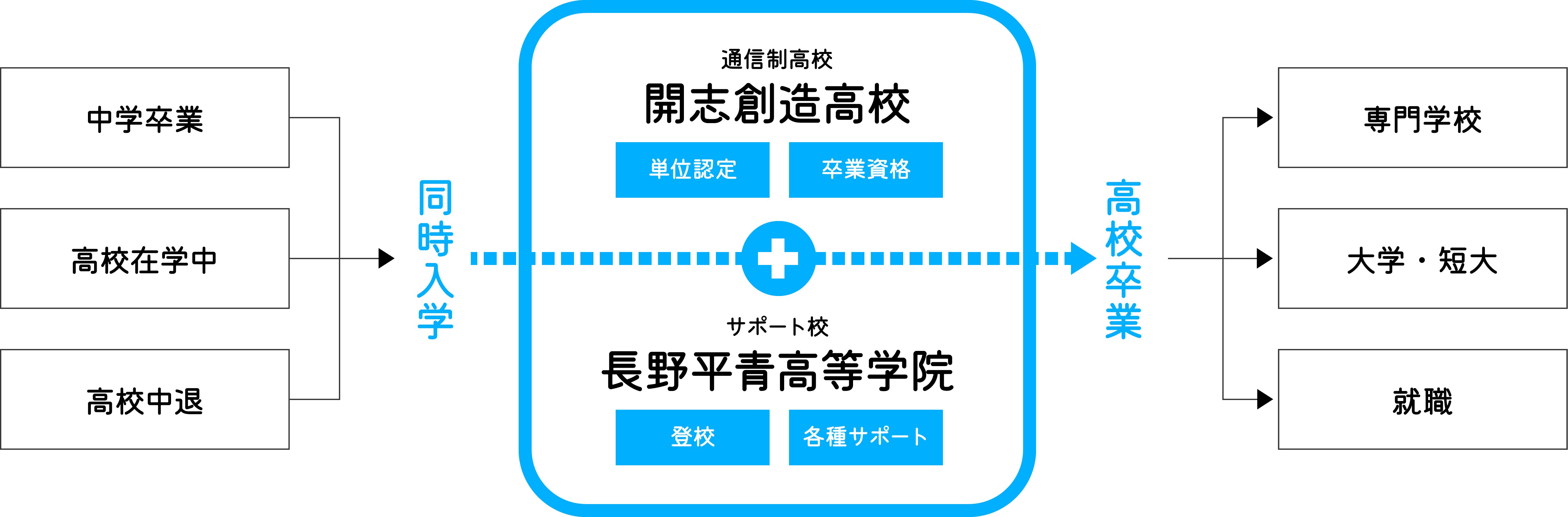 サポート校での支援を受けながら、高卒資格取得を目指します。専門学校のキャリ探求授業も受講できます。